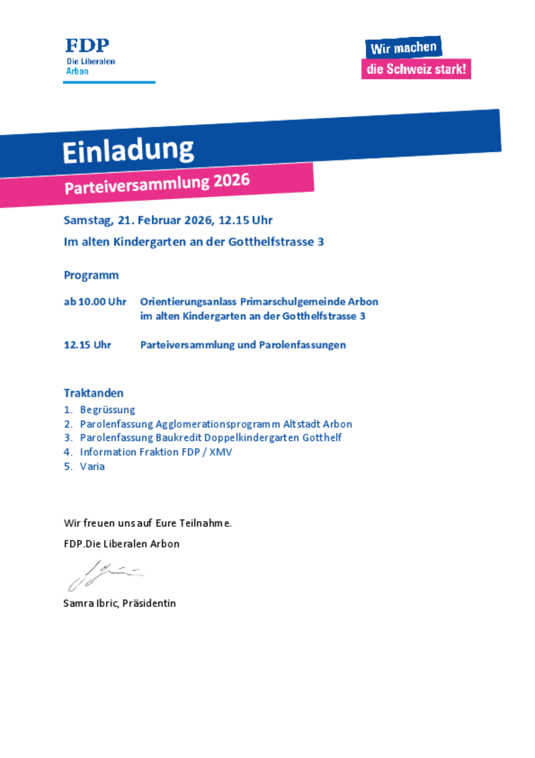 12.15 Uhr Traktanden Parteiversammlung und Parolenfassungen